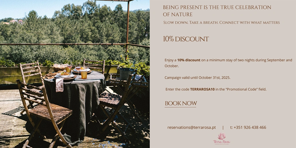 Terra Rosa Country House & Vineyards is the name of the agritourism that carries in itself the heart of Minho. Located in “Quinta de Codeçosa”, a family estate, dating back to 1758, between Ponte de Lima and Vila Verde, seventy hectares of a unique atmosphere are home to fifty hectares of vineyards. A main house organizes, along with other buildings, a space of comfort and tranquillity, from which you enjoy a surrounding and unique landscape. And all this is accessed by an elegant cypress-lined entrance, between vineyards rigorously traced and laid out. Welcome to our home.